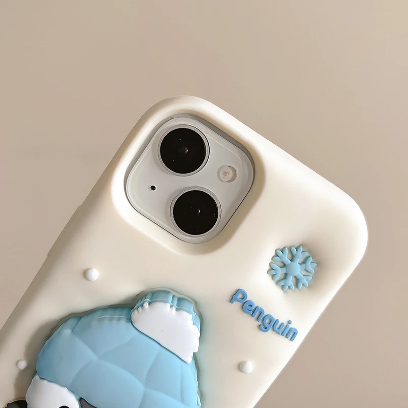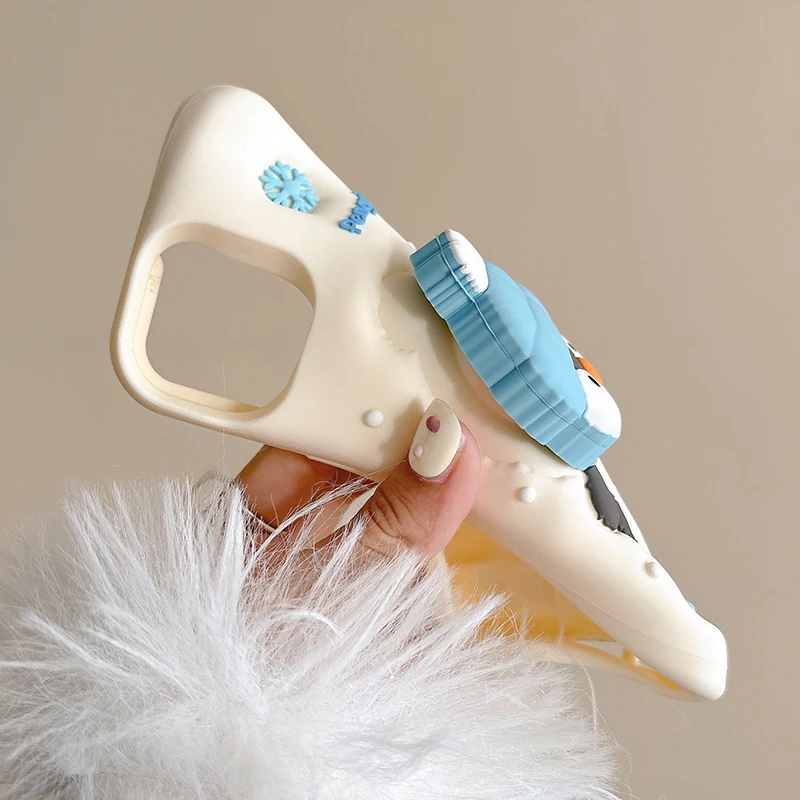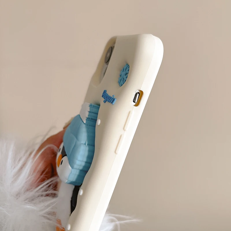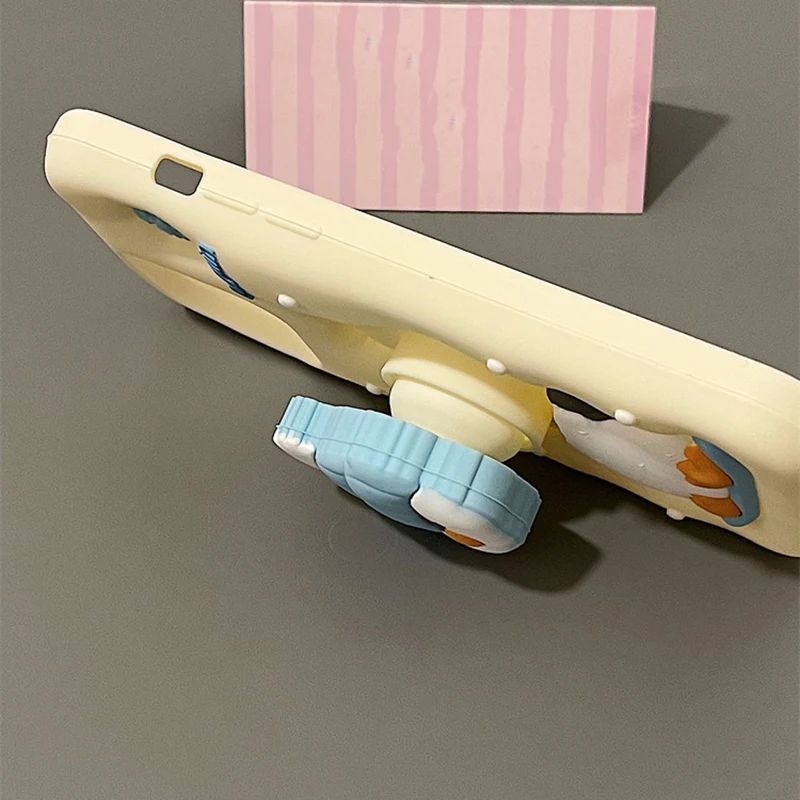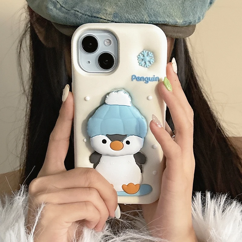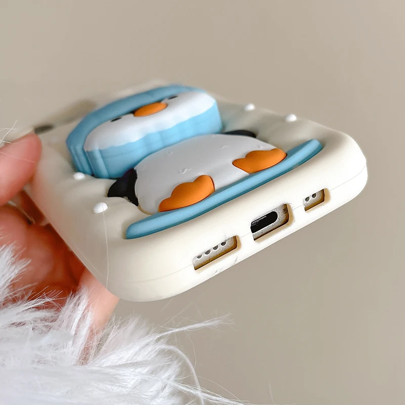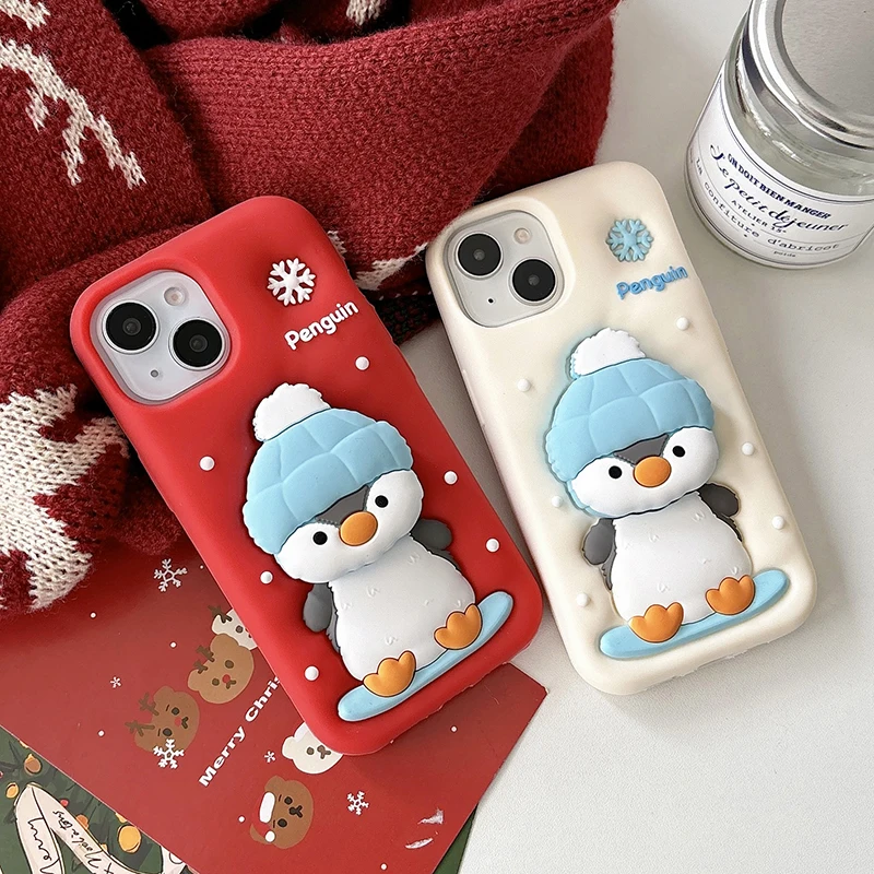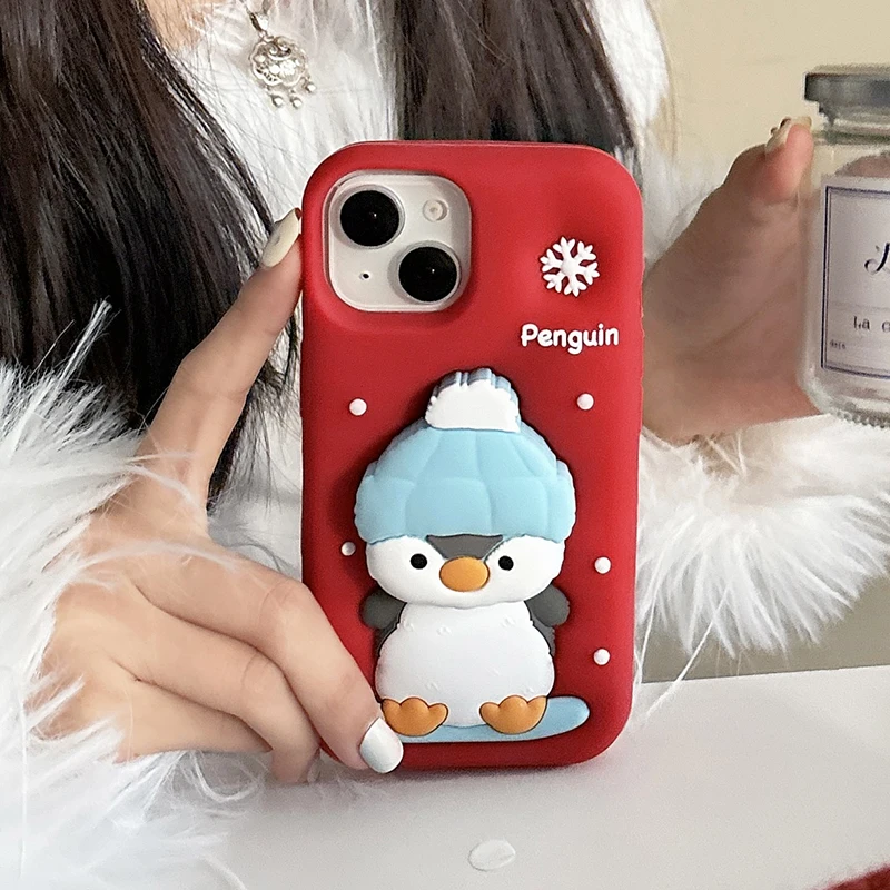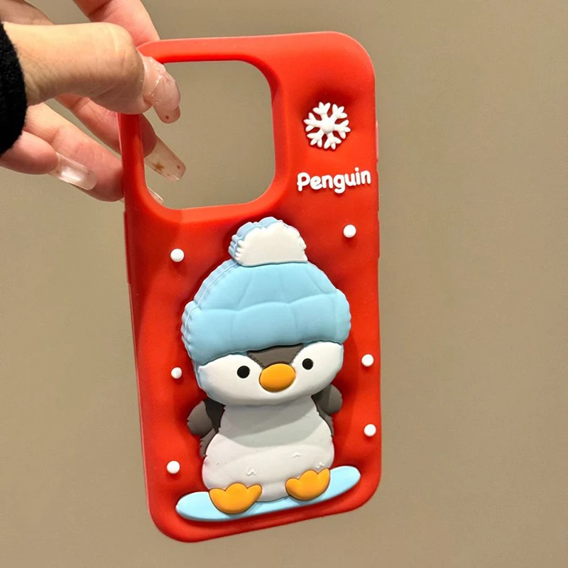 3D Cute Penguin Folding Bracket Soft Silicone Phone Case For iPhone 16 15 14 13 12 Pro Max Cartoon Christmas Kickstand Cover